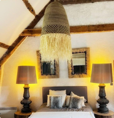 Suspension ajouré en Sisal et Raphia tressée à la main à Bali.